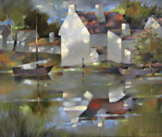 То, что сказано о серии “Очертания Музыки” может быть отнесено во многом и к серии “Свет и Тени”. Ритмы, пропорции, восходящие, нисходящие и эллиптические движения, контрасты холодного и тёплого, приглушённого и яркого, мягкого и острого – в целом, тот же набор “инструментов”. Только сюжеты здесь иные, а сложносоставность словесно-пространственного континуума менее очевидна. Небольшие искажения в геометрии пространства намекает на присутствие иных измерений, а лёгкая размытость очертаний говорит о неостановивом движении, точнее - о дыхании жизни. Строго говоря, объекты и сюжеты имеют второстепенное значение. Свет – главный герой в моих работах. Я редко пишу с натуры или пользуюсь фотографией. Просто увиденное приношу с собой в мастерскую. Россия, Латвия, Канада. Дни и ночи, свет и тени. ................................................................................ Basically, what has been said about “Shapes of Music” series can be addressed to the “Lights and Shadows” series. Rhythm, proportions, acceding, descending and elliptical movements, contrasts of warm and cold, dark and light, soft and sharp - this is the same set of visual “tools” as in the musical series, only the subjects are different, the tones are less saturated and the Objects and subjects are actually secondary, the light is the main “hero” of all these paintings. |